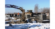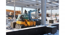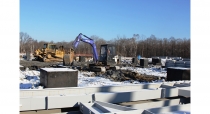 На площадке будущего «Терминатора» кипит работа: уже завершены планировка территории, земляные работы и устройство фундамента, и этот этап потребовал от строителей больших усилий ввиду сложного рельефа участка. Как сообщил представитель подрядчика, строителям потребовалось около 90 тысяч кубов грунта, для того чтоб выровнять площадку. Насыпной грунт обусловил выбор свайного фундамента с ростверками. Сейчас площадка полностью готова к возведению здания завода, и строители приступили к монтажу металлических конструкций.