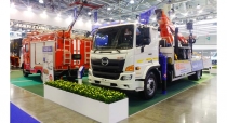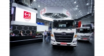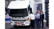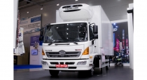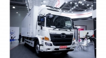 Главной новинкой на стенде HINO стал автомобиль HINO 500 FM – 26-тонное шасси общего назначения со средней колесной базой. Автомобиль получил более мощный 9-литровый двигатель (350 л.с., крутящий момент 1422 Н∙м при 1100–1600 об/мин), новую 9-ступенчатую КПП японского производства, принудительную блокировку межколесного и межосевого дифференциалов, а также оптимальные варианты колесной базы для разного типа надстроек (короткое самосвальное шасси и два более длинных шасси общего назначения).