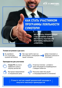 Все клиенты, приобретающие у нас грузовую технику, могут стать участниками Программы лояльности Сумотори.